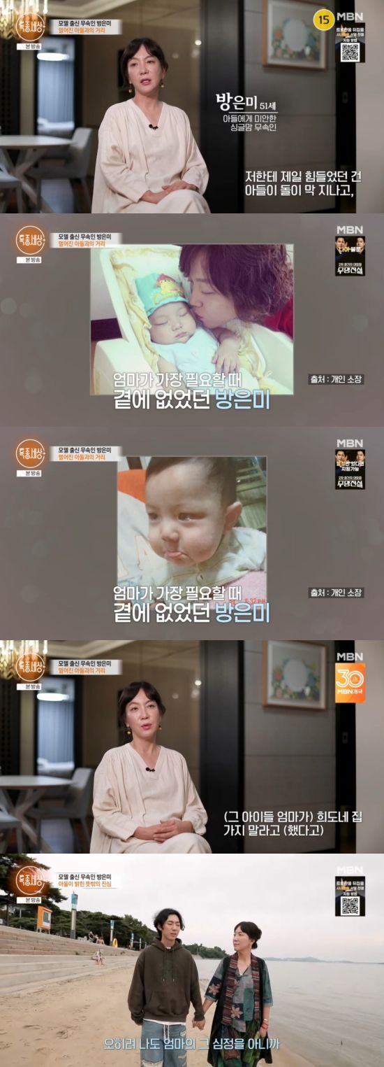 아들이 100일 때 전 남편과 헤어졌고, 돌이 지났을 때 신내림을 받았다. 신내림을 받은 이유는 아들에게 같은 고통이 대물림될 수 있다는 말 한마디 때문이었다. 방은미는 "아들과 떨어져 지냈던 3년이 가장 힘들었다. 아이를 키우시는 분들은 알겠지만 돌배기 딸 아들과 떨어져서 지내고 싶은 사람이 누가 있겠나. 그 시간이 저한테는 칼로 살을 도려내는 것 같은 제일 힘든 기억이었다"고 털어놨다.