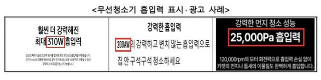 삼성전자와 LG전자 제품은 국제표준(IEC) 단위인 와트를, 다이슨(말레이시아산)·드리미(중국산)는 미국재료시험협회(ASTM) 표준 단위인 에어와트(AW)를 각각 활용하고 있었다.