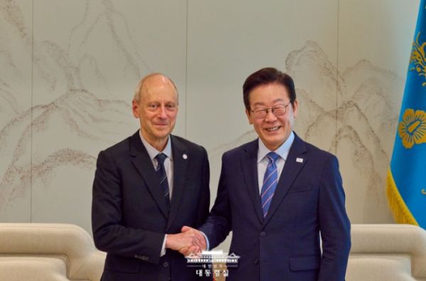 [경기연합신문 ] 이재명 대통령은 오늘 오후 집무실에서 '정의란 무엇인가'의 저자인 마이클 샌델 미국 하버드대 교수를 접견했다.