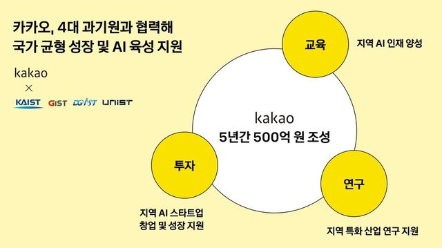 [엠투데이 이정근기자] 카카오그룹은 국내 4대 과학기술원(KAIST, GIST, DGIST, UNIST)과 손잡고 국가 균형 성장을 위한 지역 AI 생태계 육성에 나선다. 카카오그룹은 이를 위해 향후 5년간 총 500억 원 규모의 기금을 조성한다고 18일 밝혔다.