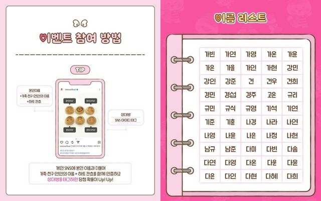 롯데웰푸드 '내 이름을 찾아라' 이벤트 안내 및 이름 리스트 일부. / 롯데웰푸드 인스타그램