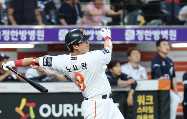 지난 6월 12일 대전 한화생명볼파크에서 열린 '2025 신한 SOL 뱅크 KBO리그' 한화이글스 대 두산베어스 경기에서 한화 노시환이 1회말 동점 2점 홈런을 치고 있다. / 뉴스1