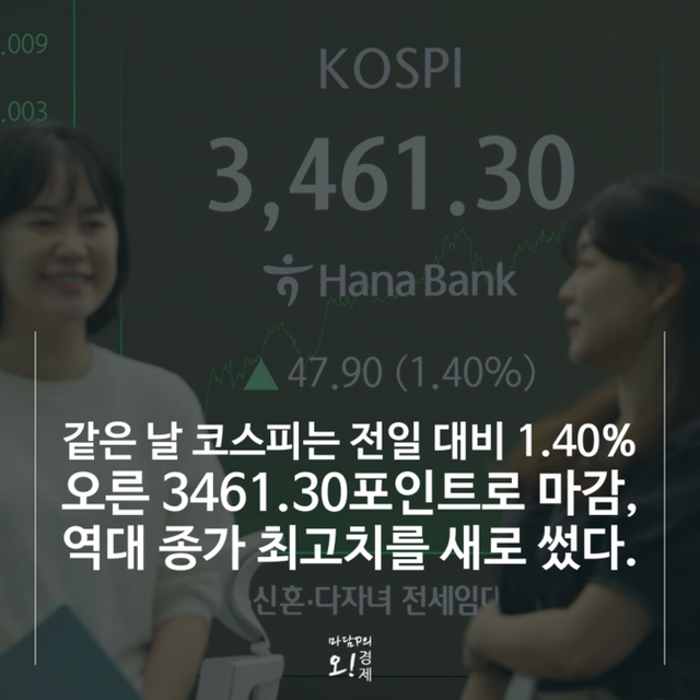 이 과정에서 9월 18일 종가 기준 평가이익은 1160만원, 수익률은 26.4%에 달했다. 같은 날 코스피 지수는 3461.30 포인트로 마감하며 역대 종가 최고치를 기록했다.