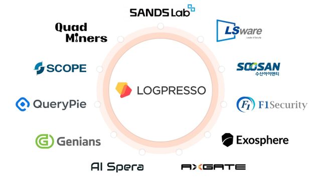 구동언: API만 있으면 연결은 됩니다. 하지만 실제 현장에서 제대로 된 보안 지표를 뽑아내려면 추가적인 노력이 많이 필요합니다. 반대로 로그프레소 얼라이언스는 양사가 미리 연동 방식을 맞춰놓습니다. 그래서 고객은 전기 콘센트에 플러그 꽂듯이, 그냥 연결만 하면 바로 필요한 보안 통제 항목을 확인할 수 있습니다. 사실 ‘국산 보안 솔루션은 연결하기 어렵다’는 편견이 있었는데, 저희는 이런 인식을 깨기 위해 여러 회사와 협력하고 있습니다. 현재도 SaaS용 PC 보안 ‘엑소스피어’, Criminal IP를 서비스하는 ‘AI 스페라’를 포함해 13개 이상의 국내 보안 기업과 긴밀하게 협업하고 있습니다.