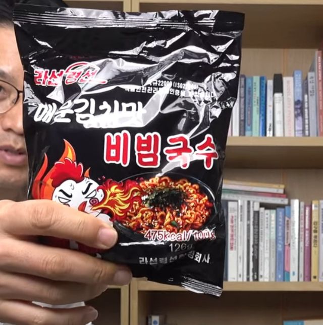 강 교수가 소개한 제품은 제조사 '라선령선합영회사'의 5개입 ‘매운김치맛 비빔국수’다. 제품의 포장 전면에는 불을 뿜는 닭 캐릭터가 그려져 있는데, 이는 삼양식품 불닭볶음면의 마스코트 '호치'를 연상케 한다. 검은색 배경에 흰색과 빨간색 글자를 조합한 디자인 역시 불닭볶음면과 상당 부분 흡사하다.