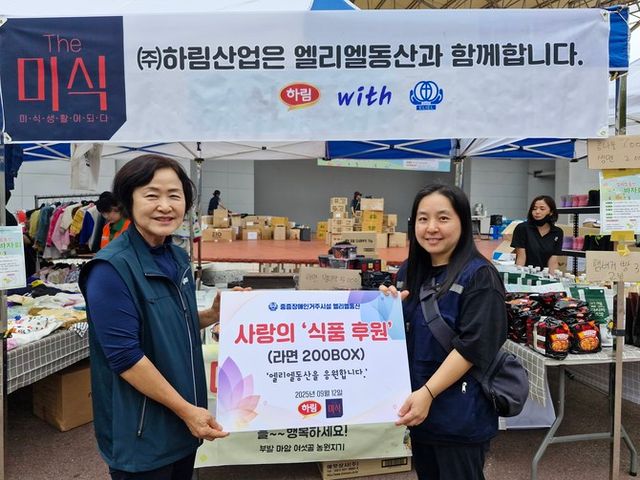 하림산업은 지난 12~13일 열린 '2025 엘리엘동산 바자회'에 △더미식 오징어라면 △더미식 장인라면 △하림 용가리 불볶음면 △하림 용가리 불비빔면 △하림 마라쌀볶음면 등 총 200박스(약 3201개)를 전달했다.