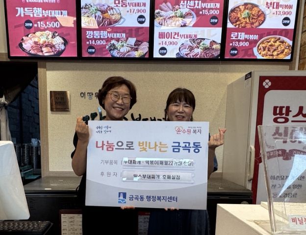 [와이뉴스] 수원시 권선구 금곡동 행정복지센터는 지난 18일, 관내 '땅스부대찌개' 호매실점과 함께 “이웃돕기 나눔 전달식”을 진행했다고 밝혔다.