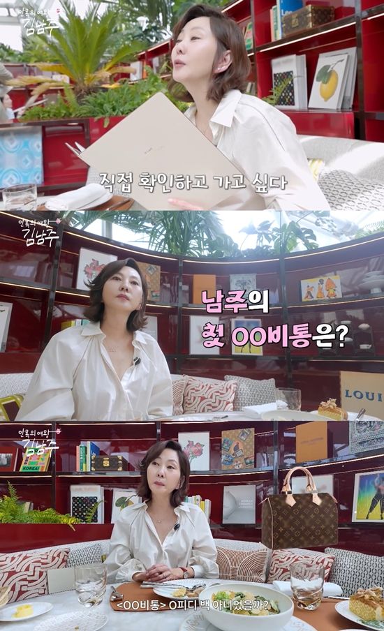 제작진은 고급스러운 요리를 먹으며 이야기를 나누던 김남주에게 "언제 처음으로 루이비통을 구매하셨어요?"라고 질문을 건넸다. 김남주는 "돈을 벌기 시작하면서 가장 먼저 접한 건 피X백이다. 가격대도 처음 접한 브랜드보다 괜찮았고, 어디에나 어울려서 선택폭을 넓혀 줬다. 그 백이 '첫 입문백'이다"라고 밝혔다.