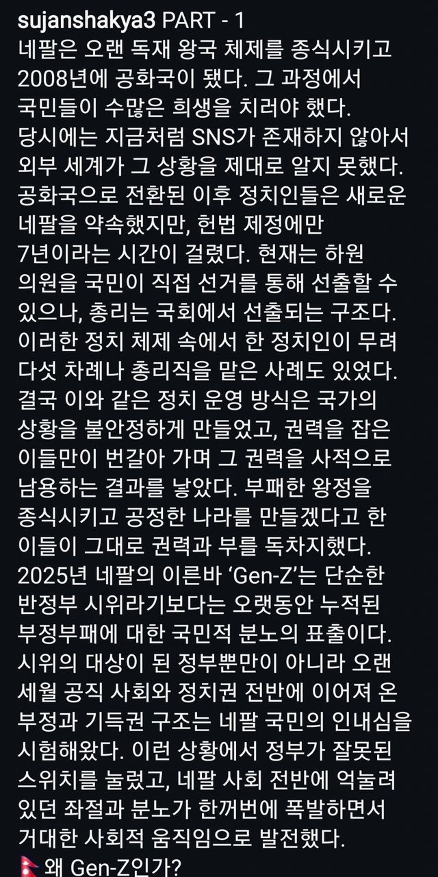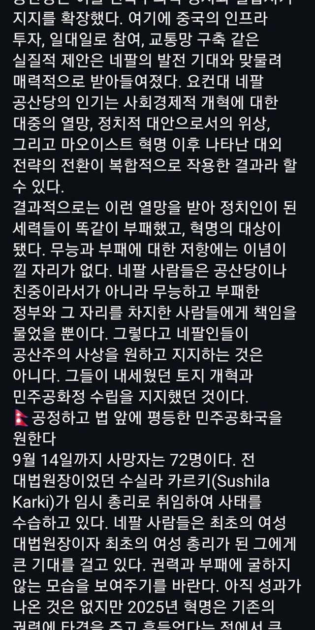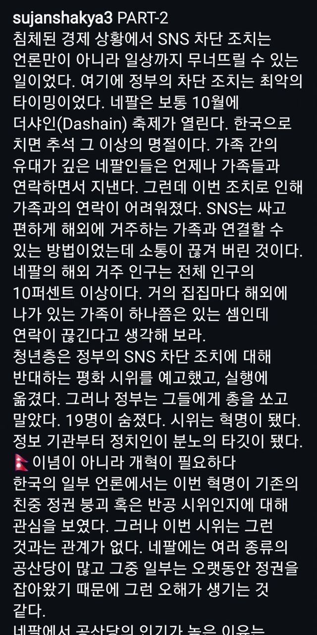 현재 대규모 시위로 난리난 네팔 출신 수잔 인스타