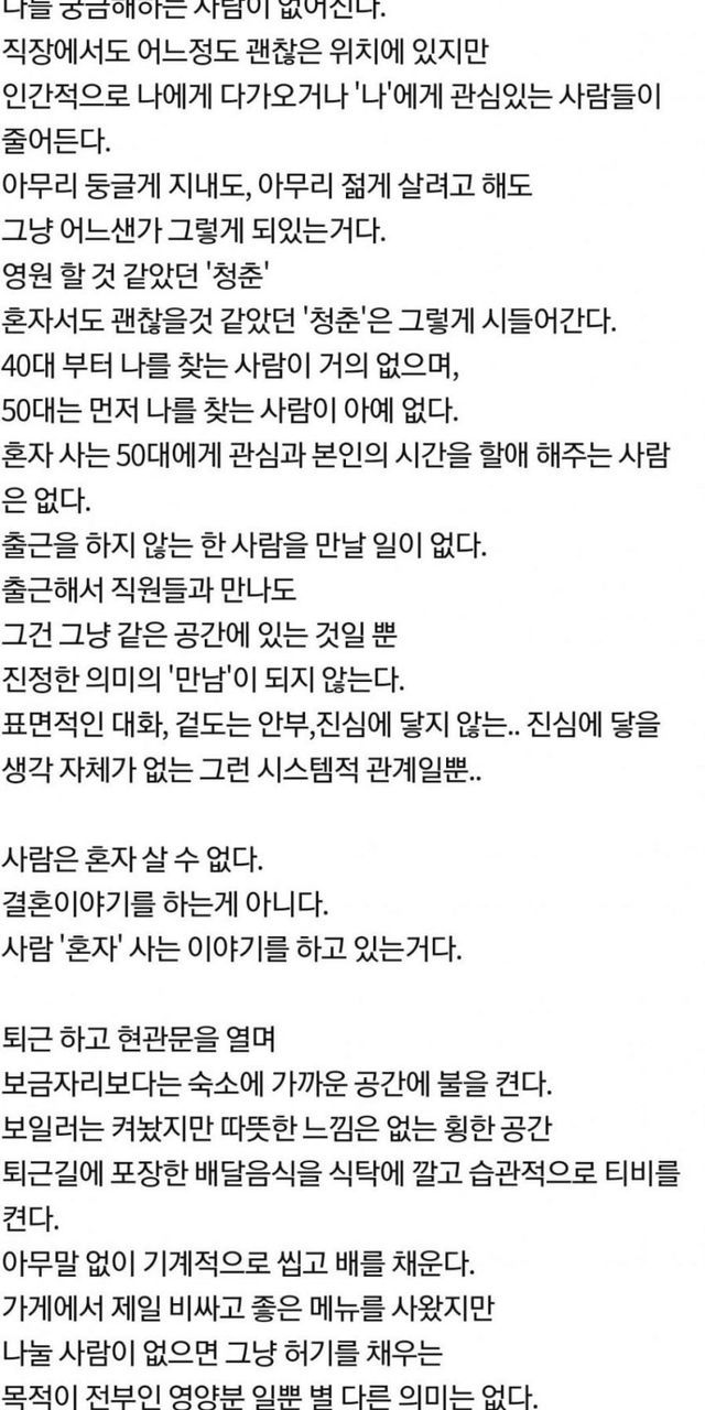 혼자 사는게 괜찮은건 30대 까지다.