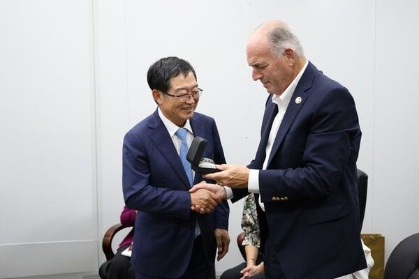 백 회장은 환담에서 "전쟁기념관은 6·25전쟁 당시 참전한 용사들과 그 가족들의 희생과 헌신을 기억하는 곳"이라며 "매년 300만명이 넘는 관람객이 방문하는 대한민국 대표 명소"라고 말했다.