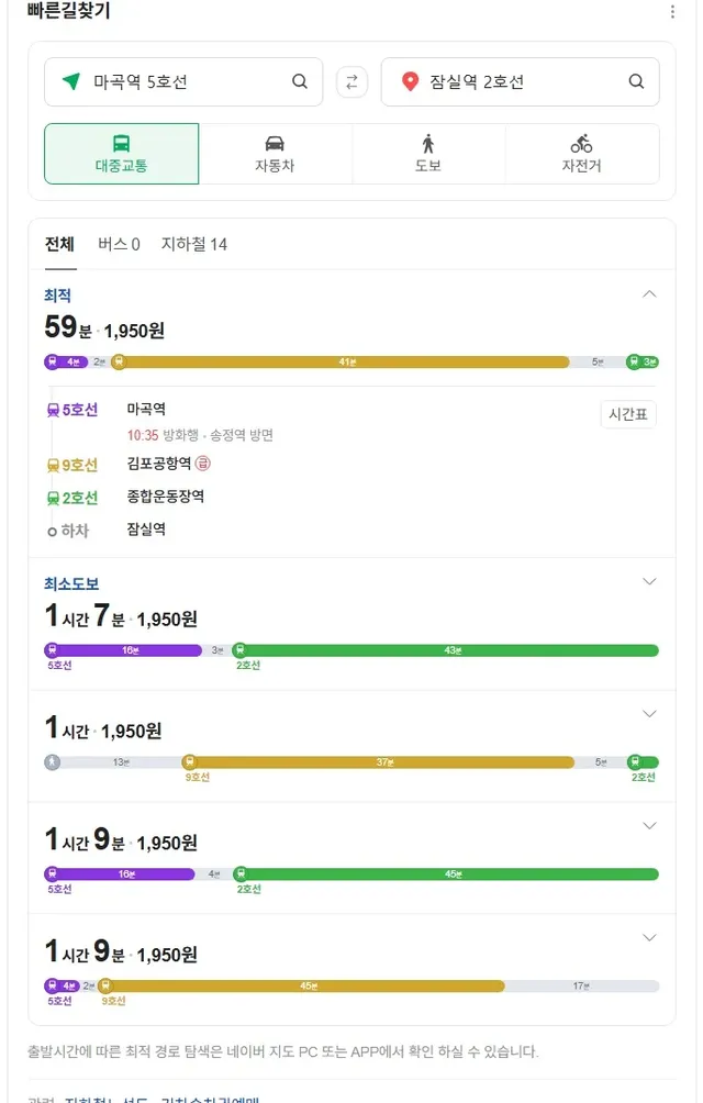 그냥 한번 갈아타는걸로 해도 1시간7분