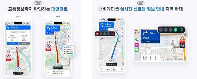 새롭게 추가된 실시간 신호등 안내 기능도 눈에 띈다. 네이버지도는 전방 교차로의 신호등 상태를 미리 표시해 운전자가 멀리 떨어진 신호를 확인할 수 있도록 했다.