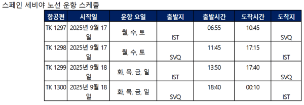 세비야 노선은 마드리드, 바르셀로나, 발렌시아, 말라가, 빌바오에 이어 스페인 내 터키항공의 여섯 번째 취항지다.