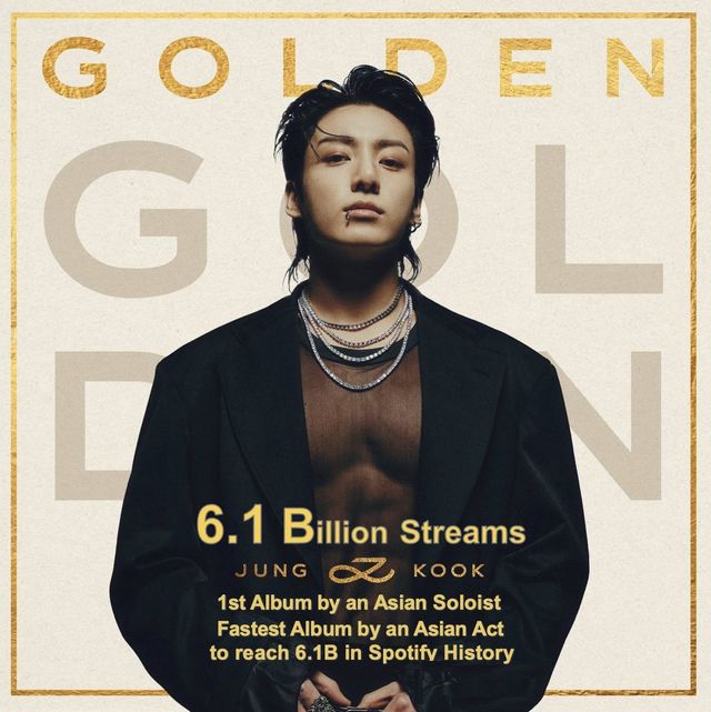 ‘유럽의 빌보드’라 불리는 월드뮤직어워드(WMA)는 공식 계정을 통해 정국의 ‘GOLDEN’이 세계 최대 음원 플랫폼 스포티파이(Spotify)에서 누적 61억 스트리밍(필터링 전)을 돌파했다고 밝혔다. 아시아 솔로 아티스트 앨범으로는 ‘최초’, 아시아 아티스트 정규 앨범 중에서도 ‘최단’ 기간에 이룬 기록으로 “역사를 새로 썼다”는 평가가 뒤따랐다.