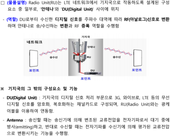기지국 RU(Radio Unit)의 제품 개요(자료=외교부) |