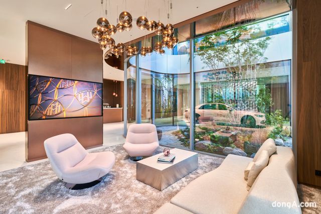 센터에 들어서면 가장 먼저 눈길을 사로잡는 것은 ‘젠 스타일’ 중정이다. 빛이 자연스럽게 스며드는 동양적 공간 디자인은 도심 한복판임에도 깊은 고요와 평온을 선사한다. 전시장 중앙에 위치한 이 중정 덕분에 방문객은 차량 색상을 자연광 아래서 왜곡 없이 생생하게 경험할 수 있다. 센터 전역에서는 은은하게 퍼지는 시그니처 향도 느껴진다. 운영사가 마이바흐 브랜드센터 서울을 위해 개발한 장치다. 청명한 시트러스와 우아한 플로럴, 깊이 있는 우디 머스크가 어우러져 방문객의 감성을 사로잡는다.