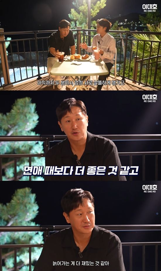 카페에서 이야기를 나누던 두 사람. 혀형범은 "제가 옆에서 같이 봐도, 아직까지 두 분은 서로 살뜰하게 챙기며 풋풋한 느낌이 든다"며 이대호와 와이프 신혜정의 사이를 언급했다. 이대호는 "풋풋하다기보단 그냥 어릴 때부터 친구처럼 잘 지내고 있고 그래서 좀 편하게 지내는 것 같다"고 이야기를 전했다.