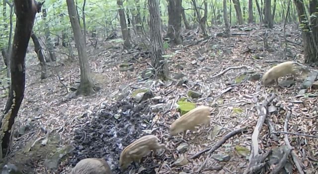 먼저 새끼를 동반한 멧돼지 가족의 모습이 포착됐다. 멧돼지는 보통 겨울에 짝짓기를 해서 5월쯤 출산하고 7월과 8월에 새끼를 기른다.