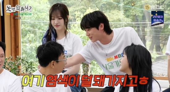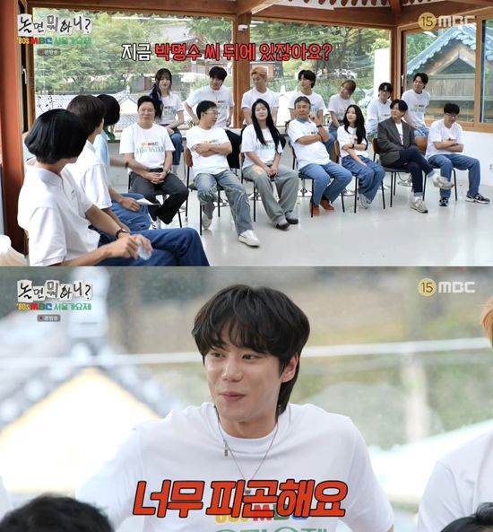 유재석은 "준영 씨는 지금 박명수 씨 뒤에 있잖아요?"라며 질문을 건네려고 하자, 이준영은 바로 "너무 피곤하다"며 박명수를 저격해 모두의 폭소를 터트렸다.
