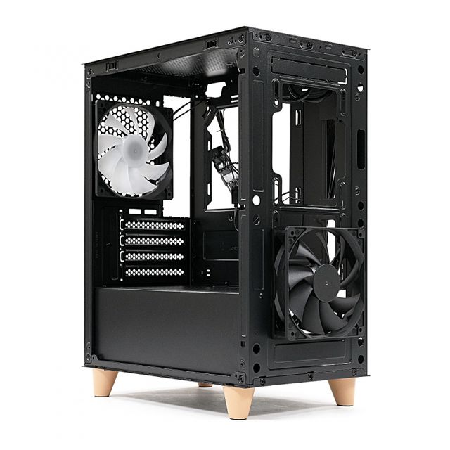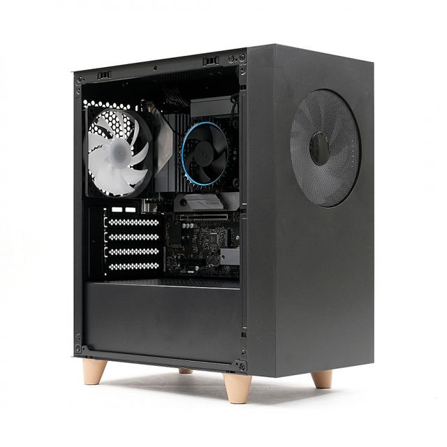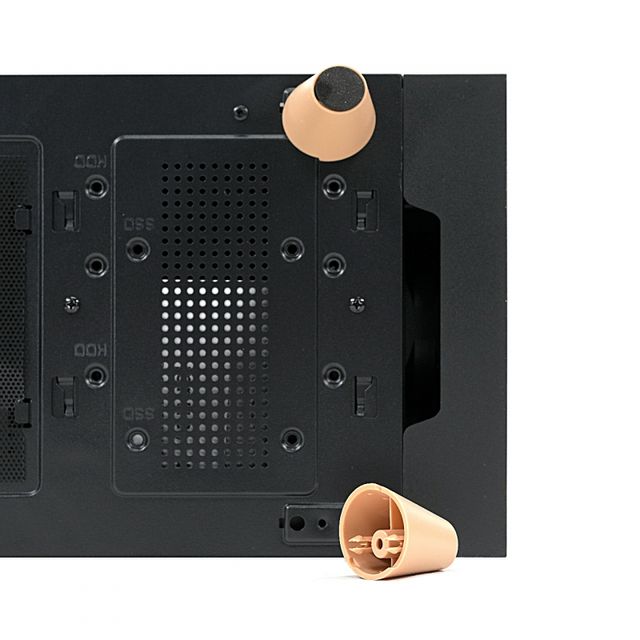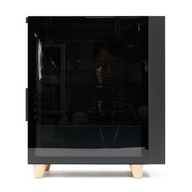 우퍼 딥톤을 더욱 우퍼처럼 보이게 만드는 두 번째 요소는 아마도 이 케이스가 가진 독특한 풋 때문이 아닐까? 정말로 우퍼의, 또는 가구의 그것과 닮은 독특한 목재 구조의 풋을 적용해 더욱 스피커 같은 감성을 만들어낸다. 전면의 대형 쿨링팬과 이 풋의 조합이 제품의 인상을 결정하는 느낌이다.