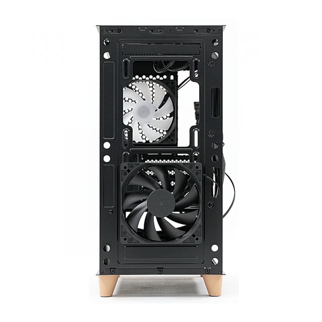 후면에도 배기를 위한 하나의 120mm RGB 쿨링팬이 기본 제공된다. 이 밖에 파워 챔버 상단과 케이스 상단 등에 각각 2개의 120mm 쿨링팬을 추가로 장착할 수 있다. 수냉 쿨러를 사용할 경우 240mm 라디에이터까지 수납이 가능할 것으로 예상된다.