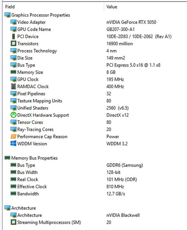 마지막으로 디스플레이 구성을 위한 출력 단자는 HDMI 2.1b×2, DP 2.1b×2를 제공한다. 최대 4대까지 모니터를 연결할 수 있다. 8K HDR 출력까지 가능하지만 RTX 5050 포지션이 게이밍에서는 FHD 해상도를 권장하는 점을 감안하면 대화면 TV와 연결하려는 리빙룸 게이머에게 무척 다양하게 쓰일 수 있는 하지만 가격은 무척 저렴해 더욱 만족스러울 그래픽카드다.