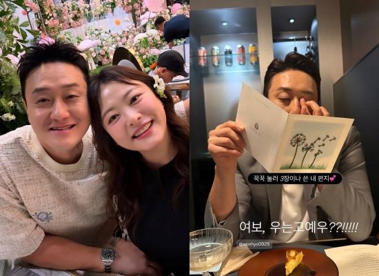 이어진 사진에는 심진화가 무려 세 장에 마음을 담아 쓴 편지를 읽고 눈물을 훔치는 김원효의 모습이 담겼다. 두 사람은 결혼 14주년을 기념해 맛있는 식사를 마친 뒤 집으로 돌아와 2차로 기념일의 여운을 달랬다.