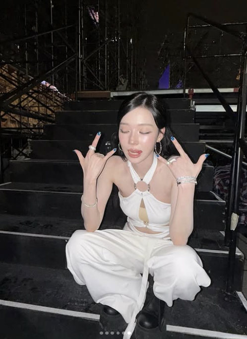 공개된 사진 속 윈터는 블랙 레더 드레스로 도회적이고 성숙한 분위기를 풍기며, 또 다른 컷에서는 화이트 크롭톱과 팬츠를 매치해 자유분방한 락스타 무드를 뽐냈다. 특히 무대 백스테이지에서 찍은 듯한 자연스러운 포즈와 카리스마 넘치는 눈빛이 팬들의 시선을 사로잡았다.