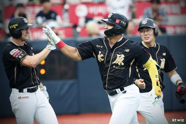 스티븐슨의 우중간 2루타와 안현민의 진루타로 만들어진 2사 3루 상황, 강백호와 장성우가 연속 볼넷을 골라 나가며 베이스를 가득 채웠다. 찬스를 이어받은 황재균이 우전 적시타로 주자 두 명을 홈에 불러들였다.