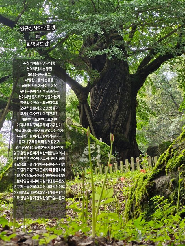 수천의피흘림영규의숲 천이백년사는동안 365는큰눈뜨고 삭발한그들의눈물을 심장에가두어살아온이유 못나구흉하게죄끼구살라구 천년을지키고산줄아는가 영규수천굳세게의선각마루 군무하듯몰려오던승병들과 모사하고결의하여지킨그곳 대한민국오천만과오천년 아직부족하구배고푸신가 영규대사의눈물이작아보인걸까 무지랭이들이라도잘차려논걸 등따시구배불러터질것같구먼 굶주린승냥이들의혼귀가붙은건가 영규흘린붉은피가석산의몸빌려와서 영천암신령약수먹구보석사에서환장 깨닳음보다즐겁게해주는게채근 보구즐기고영규라도배우고가시게들 수탈과약탈도적질까지왜놈들의칼 드높다영규대사따르세영규그숲으로 영규피눈물이꽃으로상사화석산이로 천지를덮고대한의호연지기를담는다