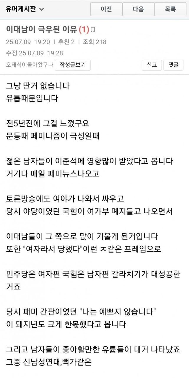 젊은층 극우화에 대하여 - 보배드림