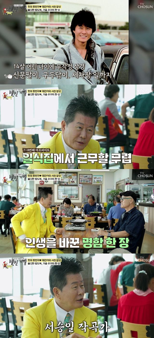이어 태진아는 "서울 올라와서 중국집 배달부터 시작해서 신문팔이, 구두닦이, 세차장 일까지 총 37가지 일을 했다"라고 밝혔다. 또 "일식집에서 일할 때가 7~8번째 직업이었다. 그때 서빙하면서 노래를 불렀다. 어떤 분이 '너 목소리가 특이하다. 노래 한 번 해 봐라'며 명함을 줬다. 그 분이 서승일 작곡가였다"라고 전해 놀라움을 자아냈다.