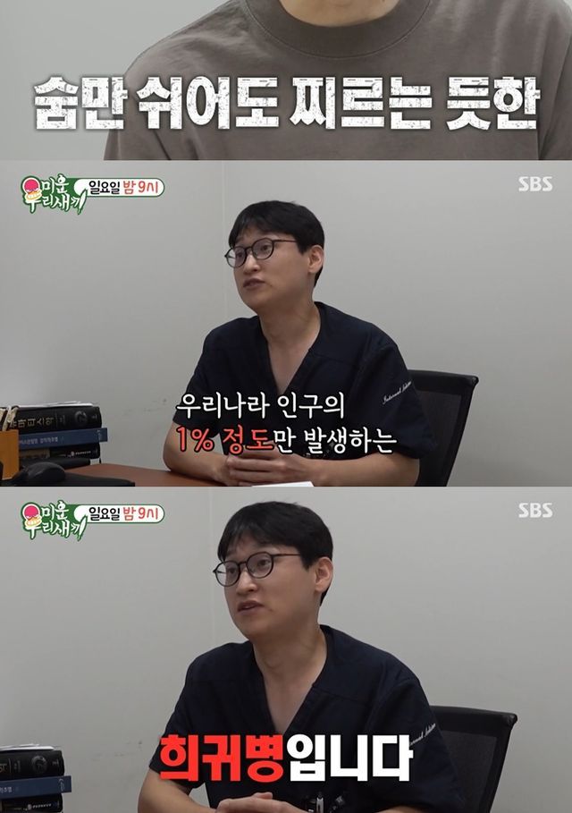 이를 들은 의료진은 "지금 증상으로 봤을 때 우리나라 인구의 1% 정도만 발생하는 희귀병"이라고 진단을 내렸고, 스튜디오는 "진짜?", "어머", "어떡해"라며 충격에 빠졌다.