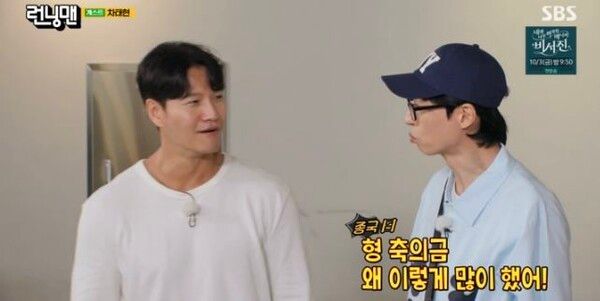 이날 MC 유재석은 "오늘 김종국이 양세찬과 최다니엘에게 축의금을 왜 이렇게 많이 했냐고 하더라"고 운을 뗐다.