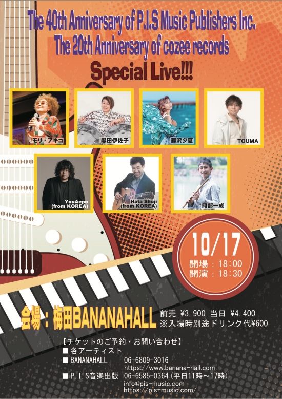 두 사람은 10월 17일 오사카 바나나홀 'P.I.S 음악출판사 40주년 & 코지레고드 20주년 기념 공연', 18일 나고야 파라다이스카페21 '기타 & 퍼커션 with 유애포', 19일 나고야 치쿠사문화소극장 '왕과 전설 with 핸드팬트라이브' 무대에 차례로 오른다. 이들은 세 차례 공연을 통해 지역과 장르, 세대를 아우르는 협업 무대를 선보일 예정이다.