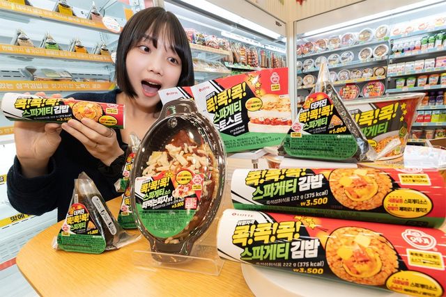 출시된 제품은 더커진스파게티삼각김밥, 스파게티김밥, 스파게티소스떠먹는피자, 스파게티토스트 등 네 가지다. 삼각김밥은 스파게티 소스를 넣은 야채볶음밥을 바탕으로 페퍼로니햄, 스모크햄, 스위트콘을 토핑하고 체다소스로 풍미를 더했다. 김밥은 스파게티 소스 밥에 페퍼로니햄, 스위트콘, 계란, 당근, 단무지를 넣어 속을 채웠다. 최근 해외에서도 인기를 끌고 있는 김밥 트렌드에 맞춰 외국인 관광객까지 겨냥한 구성이다.