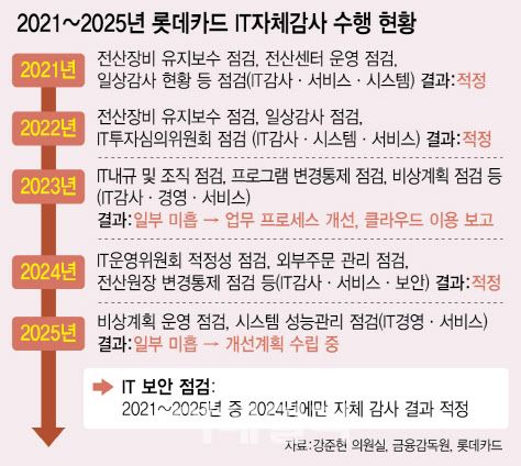 지난달 14일 처음 해킹을 당한 롯데카드는 10여일이 지난 같은 달 26일이 돼서야 사태를 파악하고 조사에 나서 뭇매를 맡고 있다. 롯데카드 조사 결과 이번 해킹 피해를 본 고객은 297만명이며 이중 28만명은 카드번호, 비밀번호, 유효기간, CVC, 주민등록번호 등 민감 정보를 유출 당했다.