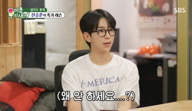 이에 신승훈은 "다 잘 살고 있지"라며 뿌듯해하더니 "나만 이러고 있지"라고 덧붙여 웃음을 자아냈다.