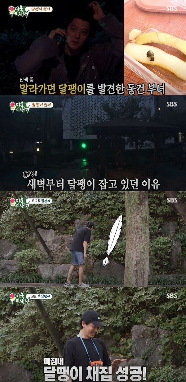 이동건은 주민 제보를 받고 간 어린이 공원에서 끝내 달팽이를 채집해 계속 감격했다.