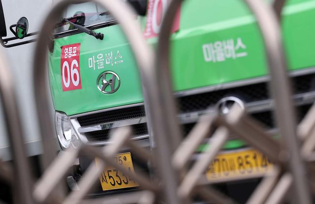 서울 시내 마을버스 차고지에 마을버스가 정차돼 있다. / 뉴스1