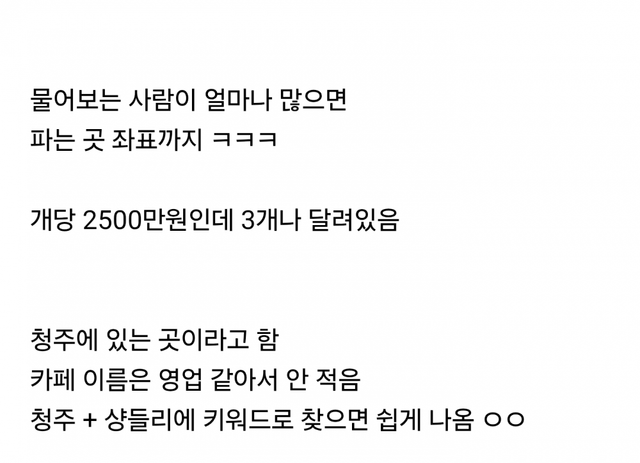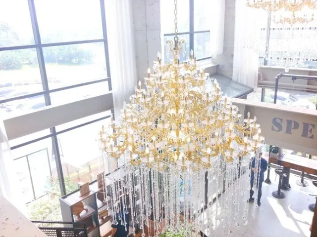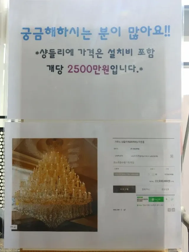 하도 물어봐서 가격을 명시 해놓은 어느 카페의 샹들리에