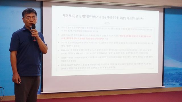 제주제2공항강행저지비상도민회의(이하 도민회의)는 22일 오전 제주도의회 도민카페에서 ‘제주 제2공항 전략환경영향평가의 항공기-조류충돌 위험성 축소 조작 브리핑’을 열었다.