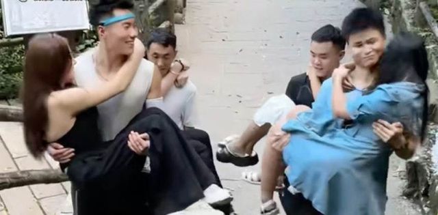 중국의 유명 등산 코스에 근육질 남성이 같이 산을 올라가주는 ‘등반 동행 서비스‘가 등장했다.