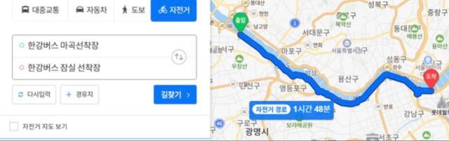 마곡에서 잠실까지의 자전거 소요 시간 역시 약 1시간 48분으로, 일반 노선보다 빠르다는 점도 한강버스의 실효성에 의문을 더한다.