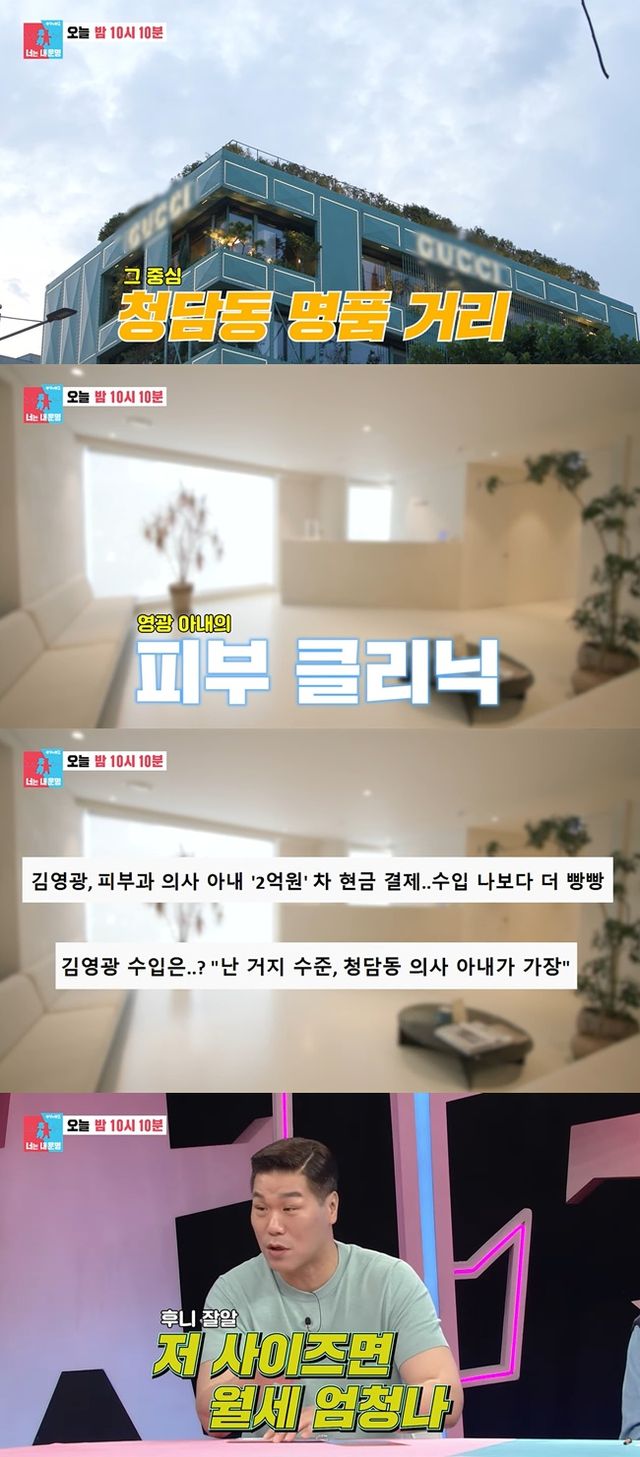아내의 근무지도 공개됐다. 강남구 청담동, 특히 명품 매장이 즐비한 거리에 자리한 클리닉으로 대표 원장이라는 사실까지 알려지며 스튜디오를 놀라게 했다.