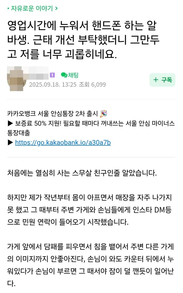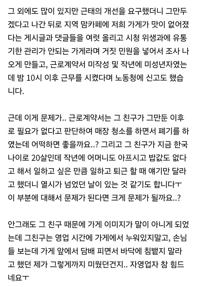 이제 자영업자 알바생 믿거리스트가,,