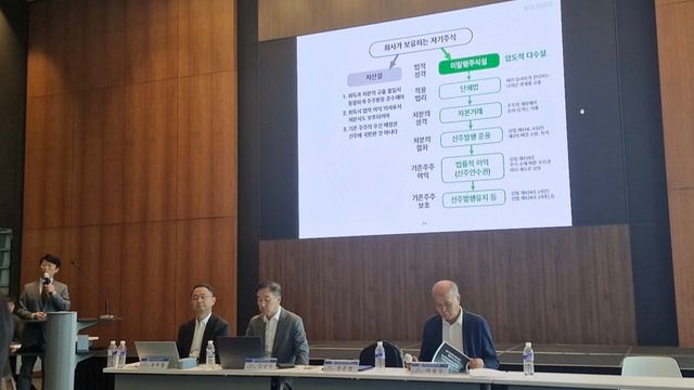 이날 발제자로 참여한 송옥렬 서울대 법학전문 대학원 교수는 “자기주식 취득은 이익 배당과 동일해, 회사의 자산이 아닌 없어진 것으로 봐야 한다”며 “이미 없어진 자사주로 EB를 발행하면 신주를 발행하는 것과 같다”고 평가했다.