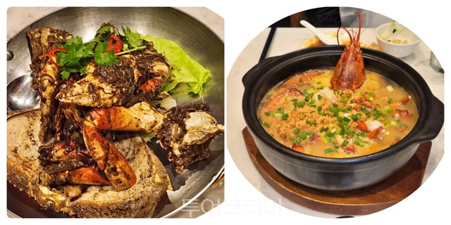 이날 점보씨푸트 대표 메뉴 시식 행사도 가졌다. 싱기포르 여행 한국인이 SNS에서 인증하는 대표 메뉴 ‘칠리크랩’은 매콤하면서 달콤한 소스와 신선한 게살이 조화를 이루는 시그니처 메뉴다. 튀김빵 ‘만토우’와 궁합이 잘 맞는다. 또 ▲ 알싸한 후추 향과 진한 게살의 풍미를 자랑하는 블랙페퍼 크랩, ▲꽃게, 새우, 랍스터 등의 고급 해산물로 맛을 낸 진한 육수에 바삭한 누룽지를 튀겨 함께 제공되는 파오판, ▲모카 폭립, ▲두부조림 등을 선보였다.
