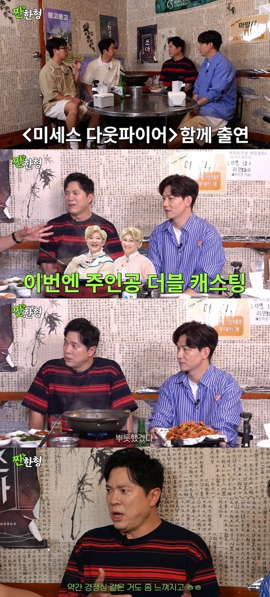 정성화와 정상훈은 함께 출연하는 '미세스 다웃파이어' 작품 이야기를 나눴다. 특히 정상화는 "철없는 아빠가 이혼당해서 그 집에 할머니로 분장하고 가는 거다. '철없는 아빠' 같은 느낌이 나야 되는데 (정상훈이) 너무 잘난다"라며 정상훈을 칭찬했다.